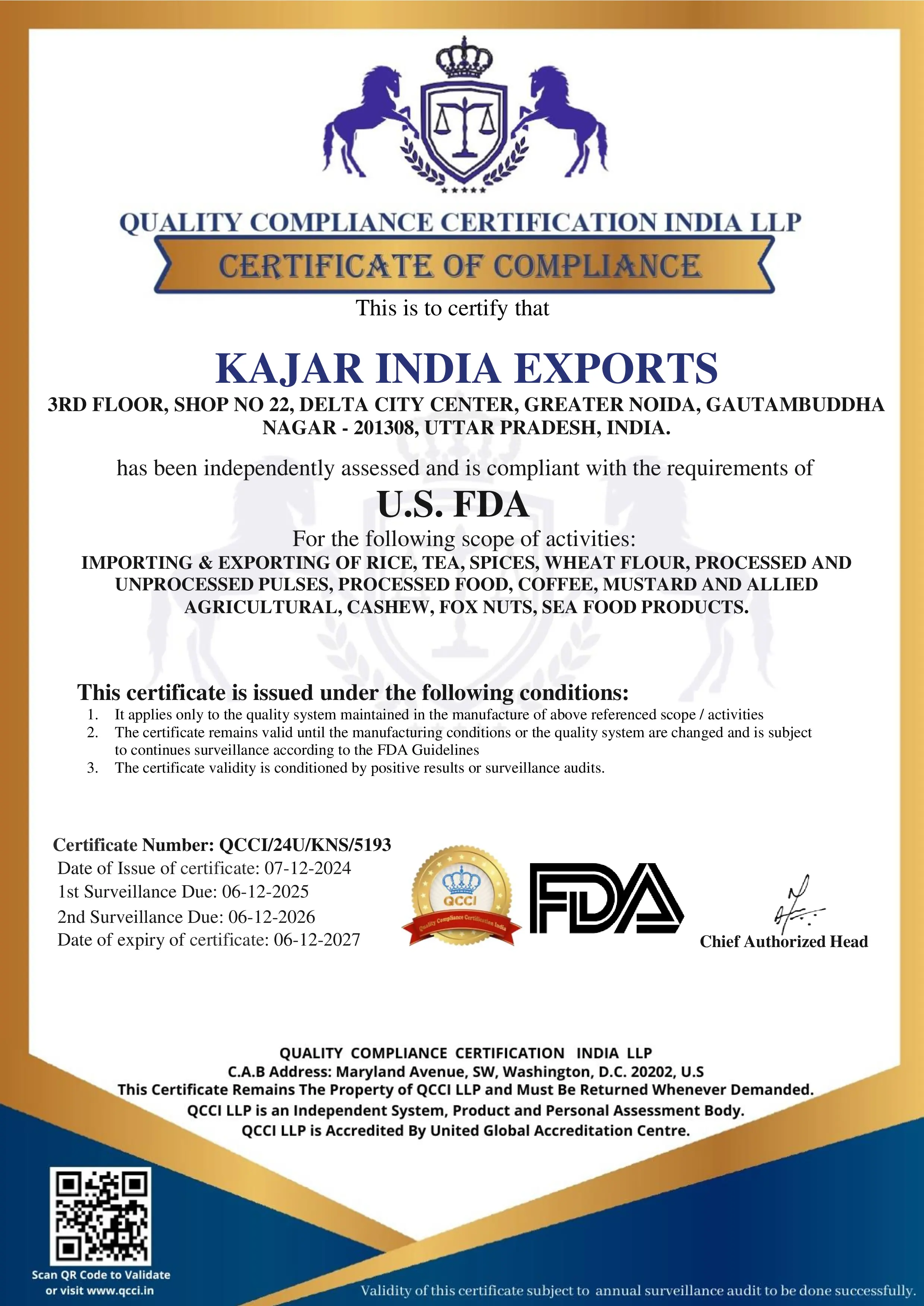 Kajar India Export is a leading manufacturer and exporter, dedicated to providing high-quality products that cater to diverse global markets. Our extensive product range includes premium Basmati rice, aromatic spices, exquisite teas, elegant curtains, and comfortable bedsheets. We also specialize in customized solutions to meet the unique requirements of our clients.
